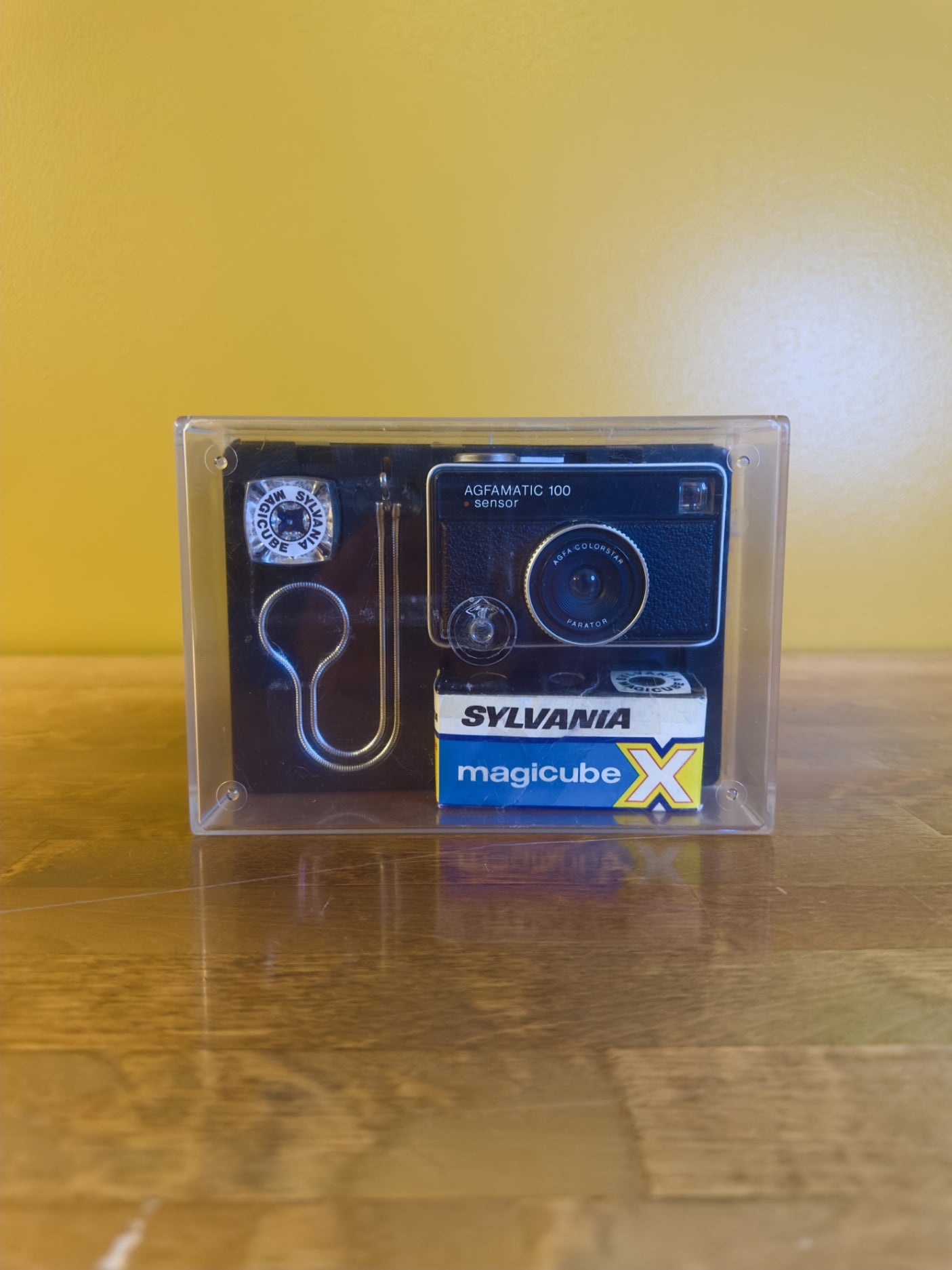 Kompakti filmiajan klassikko: Agfamatic 100. Mukana Sylvia Magicube -salamakuutiot, jotka viimeistelevät autenttisen 70-luvun kuvauselämyksen. Hieno lisä kamera- tai retroelektroniikan kokoelmaan.