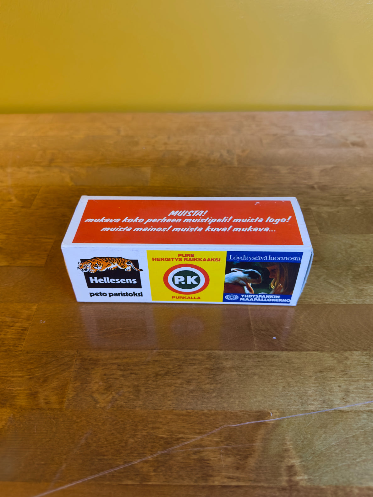 Nostalginen muistipeli, jossa vilahtelevat tutut brändit kuten Paulig, P.K-purkka ja Shell. Hauska lahjaidea ja täydellinen peli-iltoihin, joissa muistellaan menneiden vuosikymmenten arkea.